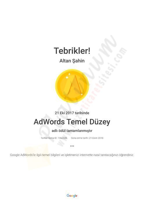 AdWords Arama Ağı Sertifikası
